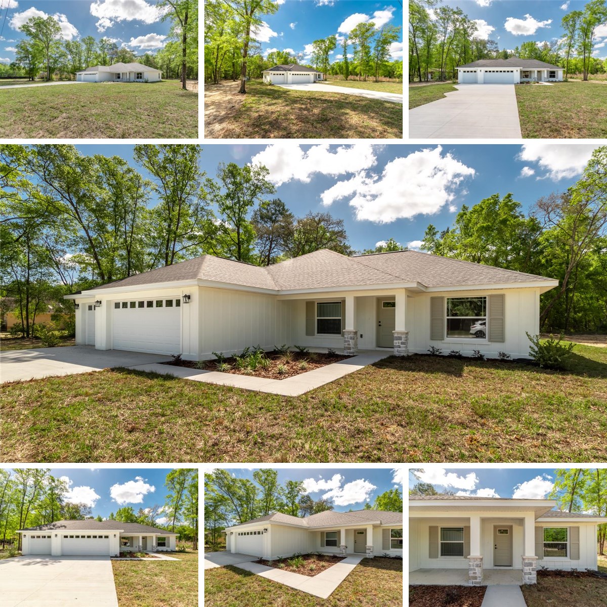 Newly completed within the deed restricted community of Rolling Hills, this inviting home provides plenty of comfort and modern functionality. Set on a 1.16-acre lot, the home offers a total of 3-bedrooms and 2-baths with over 1,700 square feet of thoughtfully designed space. Built with durable block construction and a modern aesthetic, the home features a covered front porch and entryway that opens up to the split-bedroom open floorplan filled with natural light, tall vaulted ceilings, and luxury tile flooring throughout. The spacious living and dining areas flow seamlessly into the well-appointed kitchen, which is equipped with a large center island with breakfast bar, ample cabinet storage, a pantry, and a full suite of appliances. The primary suite is generously sized and nicely private with a private en-suite bath with garden tub, glass-door shower, dual vanities, and a huge walk-in closet. The additional bedrooms rest at the opposite end of the home, providing plenty of room and flexibility of use. At the back of the home is a spacious covered patio with ceiling fan and adjacent open patio area, an ideal space for taking advantage of the year-round warm weather. With over an acre of land, there’s plenty of space for outdoor enhancements, storage, or recreational use. Additional highlights include the large 3-car garage, a dedicated laundry room, and the contemporary fixtures that are present throughout. With no HOA fees, the home is conveniently positioned with Ocala with easy access to major roadways, providing a peaceful setting while remaining within reach of everyday amenities. Don’t miss out on this opportunity to own this brand new home– schedule your showing today!