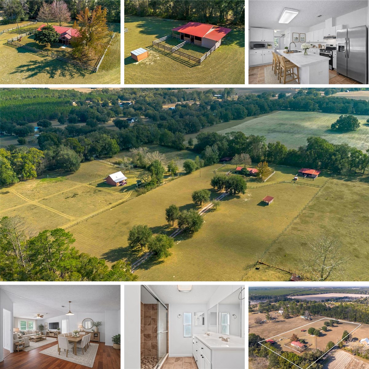 One or more photo(s) has been virtually staged. Experience the ultimate in rural serenity with this inviting 5-acre, move-in-ready equestrian property, tucked away on a peaceful dead-end road with a tree-canopied driveway in High Springs. Designed for horse lovers and hobby farmers alike, the property features a 4-stall center-aisle barn complete with stall mats, fans, and a climate-friendly, insulated tack room. Two fully fenced 2-acre pastures with a run-in shed provide ample space for your animals to roam. The land is naturally high and dry, with excellent drainage and no history of standing water. The residence is a fully renovated 3-bedroom, 2-bath country home offering total peace of mind, with a comprehensive renovation completed in 2026. This remodel included the kitchen, primary bathroom, guest bathroom, flooring, insulation, plumbing, subflooring, vapor barrier, and interior paint, creating a truly move-in-ready home. Additional highlights include a durable 50-year metal roof, a split-bedroom open floor plan, vaulted ceilings, and luxury vinyl plank flooring throughout the living areas and bedrooms. The brand-new island kitchen showcases tile flooring, modern cabinetry, stainless-steel appliances, and a brand-new range (2026). Both bathrooms were completely redesigned, including a spacious ensuite featuring a double vanity, oversized glass-enclosed shower with custom tile, and walk-in closet. A dedicated laundry room includes a premium front-load washer and dryer (2022) and built-in cabinet storage. Major system and structural upgrades include professional re-leveling and hurricane tie-downs completed in 2025. Additional improvements include a new well pump (2024), HVAC system and ductwork (2023), and hot water heater (2022). Outdoor living and infrastructure are equally impressive, featuring an expansive covered deck with a dedicated electrical line ready for a spa, a metal-roofed 3-bay pole barn, full perimeter fencing with gated entrance, and new three-rail interior fencing surrounding the home (2025). Unlike many rural properties, this home offers the convenience of both cable and fiber-optic internet. With no HOA or CDD restrictions, you’ll enjoy the freedom to create your own private sanctuary just minutes from the Alachua County Agriculture and Equestrian Center, Easton Sports Complex, and the charming boutiques and restaurants of downtown High Springs. The location offers an easy commute to Gainesville and is less than an hour from the World Equestrian Center (WEC) and several of North Florida’s most popular natural springs and state parks. Everything is ready for your next chapter—all that’s missing are your horses and your sense of adventure. Schedule your private tour today and start living the lifestyle you’ve been dreaming of.