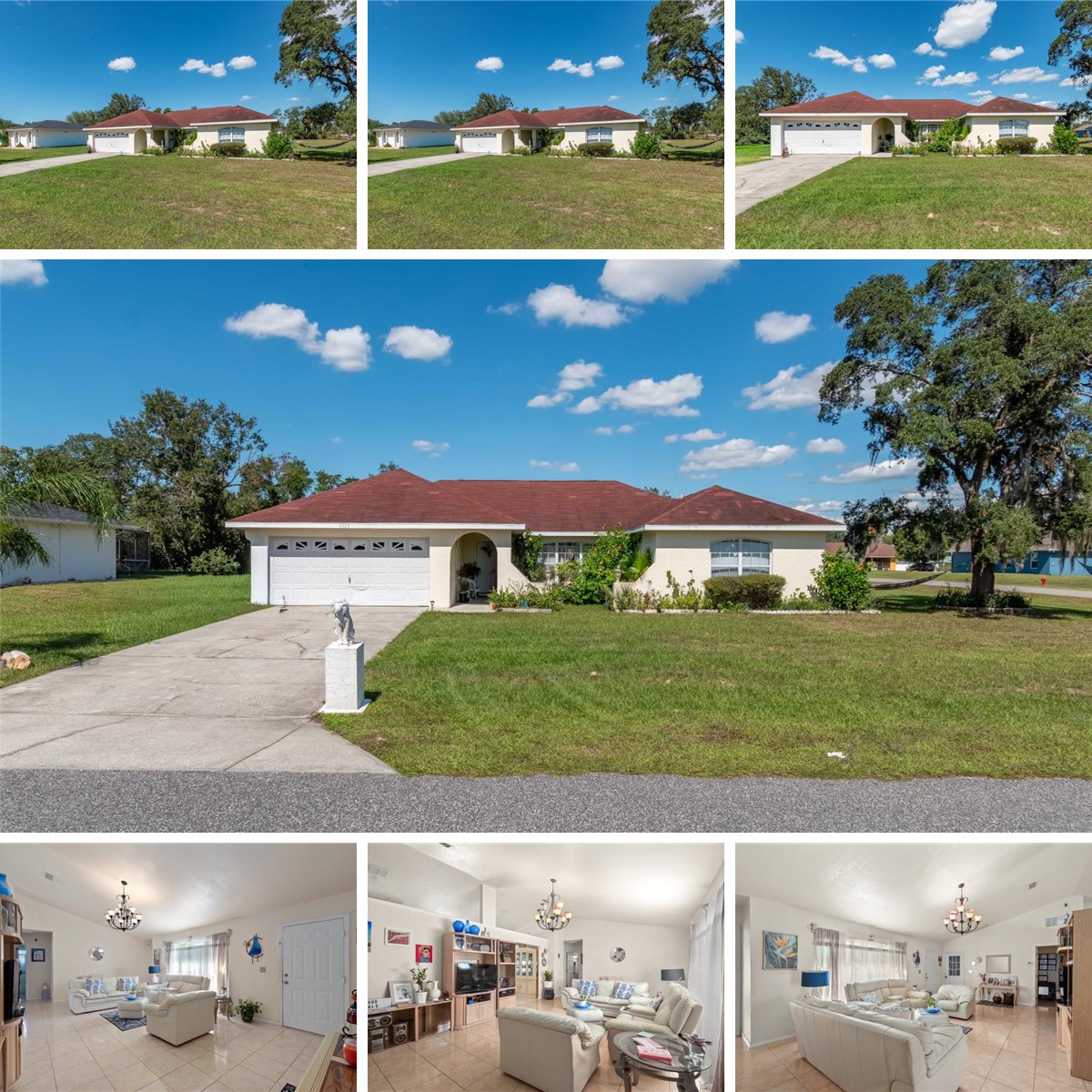 Tucked away on a quiet corner in the quiet community of Marion Oaks, this inviting 4-bedroom, 3-bathroom home offers the ideal blend of space, privacy, and laid-back Florida living. Nestled on just under half an acre of land and over 2,000 square feet of interior space, this property is designed for comfort, whether you're hosting gatherings, working from home, or simply relaxing poolside. Light and bright, the interior features vaulted ceilings and tile flooring throughout the main spaces, providing a warm and inviting atmosphere. The heart of the home is a spacious living area that flows seamlessly into a well-equipped kitchen and dining space, creating a functional layout perfect for everyday living or entertaining. The kitchen itself features ample cabinet and counter space, a breakfast bar, breakfast nook, and additional pantry storage. The primary suite features a walk-in closet and private en-suite bath complete with dual sinks, glass-door shower, and a large garden tub. Meanwhile, the three additional bedrooms provide plenty of flexibility for guests, hobbies, or a home office setup. Step outside and you'll find your own private retreat: a spacious screen-enclosed paved deck surrounding the sparkling in-ground pool, ideal for warm-weather lounging or weekend barbecues. With a large backyard and its position as a corner lot, there’s plenty of breathing room and potential to expand the outdoor entertainment spaces or create a custom garden oasis as you see fit. Additional features include a two-car garage and a wide driveway for extra parking. The home is move-in ready, with room for updates to make it your own. Best of all, there are no HOA fees, giving you more freedom and flexibility! Located just minutes from I-75, local schools, parks, and shopping, this Marion Oaks home puts convenience and comfort within easy reach. Whether you're looking for a full-time residence or a seasonal escape, this property offers lasting value in a growing area of Central Florida.